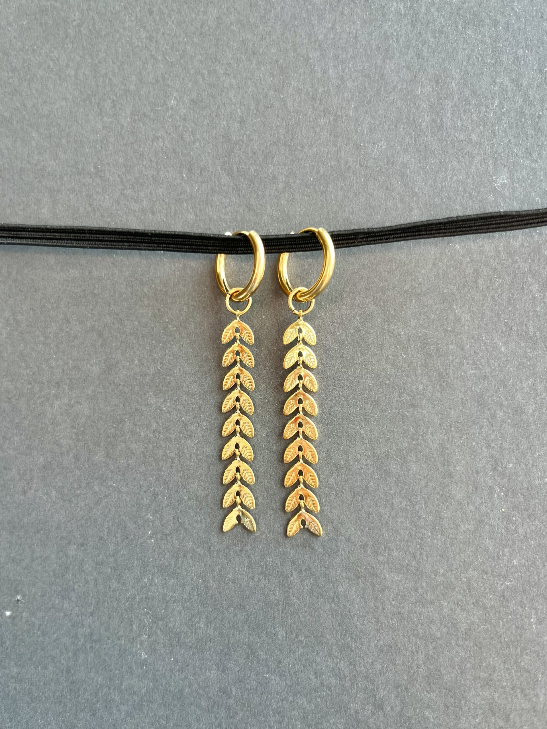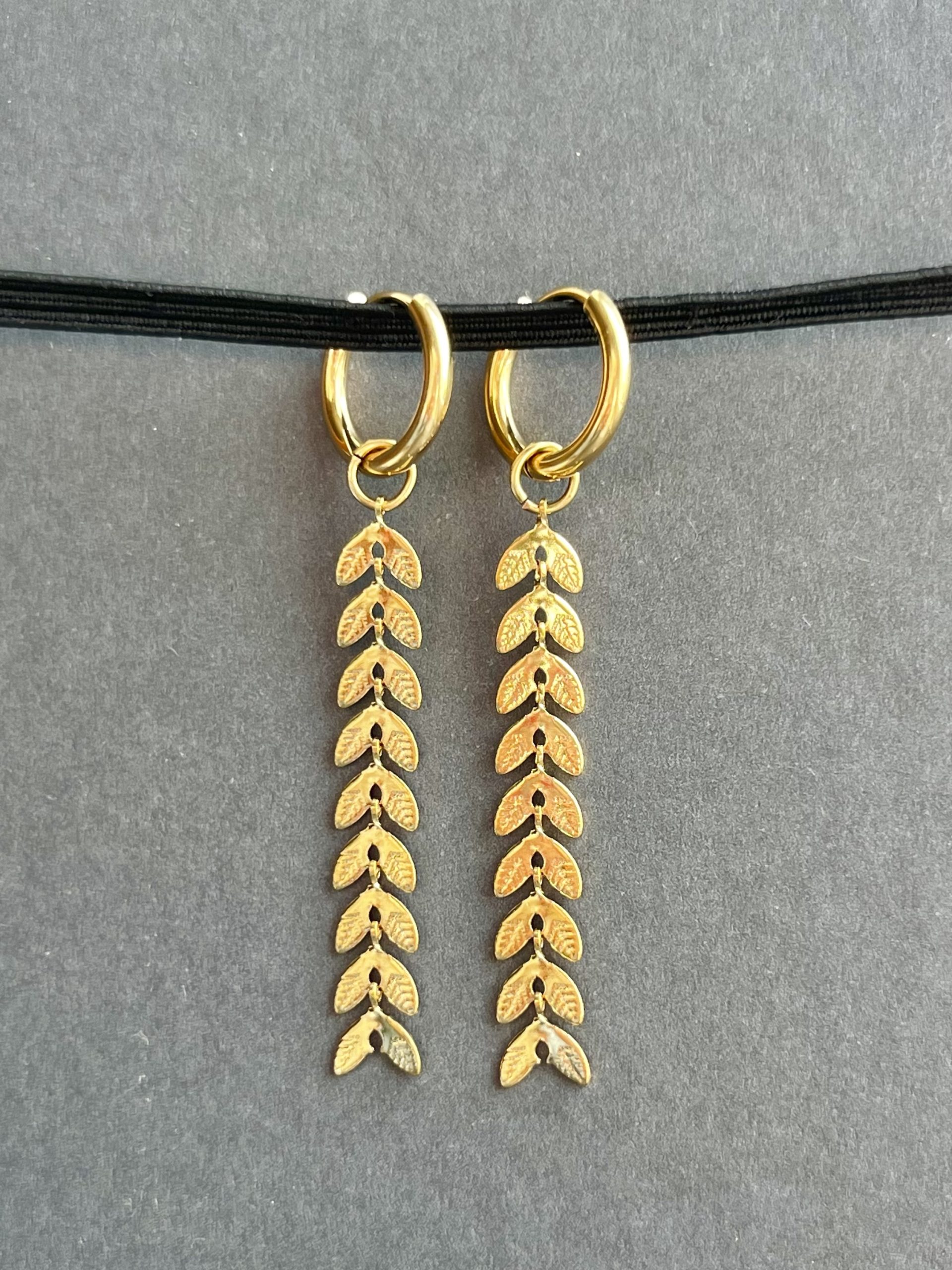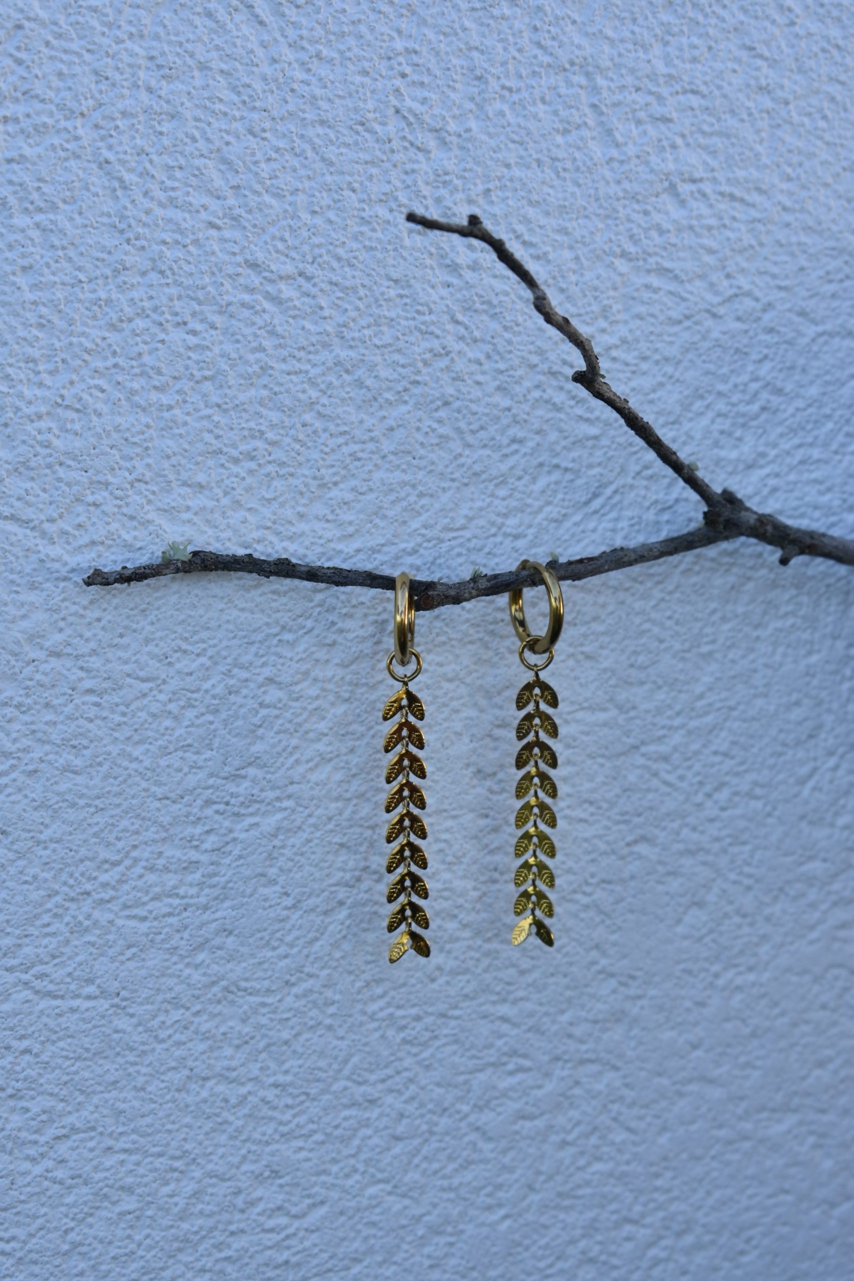 Brincos em aço inoxidável com acabamento dourado, inspirados na forma delicada das folhas.