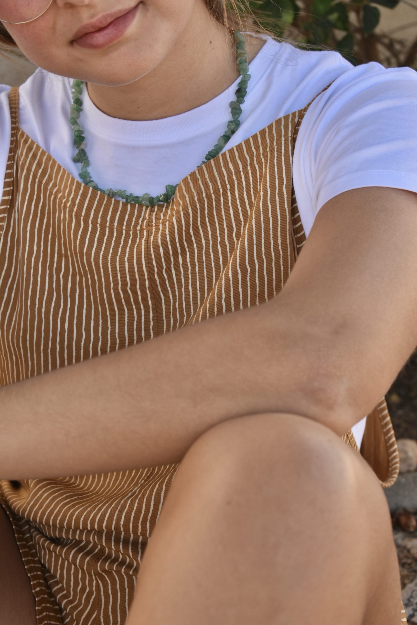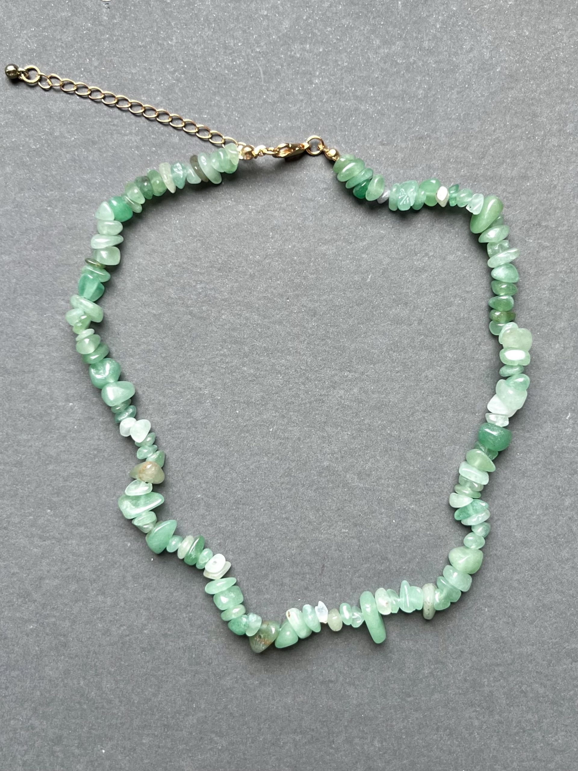 Colar com pedras naturais em tons de verde, inspirado nas cores da natureza. Cada peça é única, graças às variações naturais das pedras. Tem um fecho ajustável em aço inoxidável, garantindo conforto e durabilidade. Ideal para usar no dia a dia ou em ocasiões especiais, combinando facilmente com diferentes estilos.